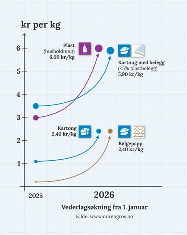 1. januar 2026 ble miljøvederlaget på emballasje økt.