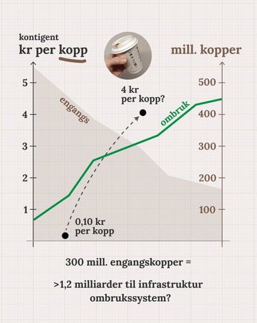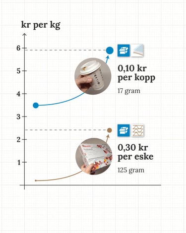 (ca 17 gram) er omtrent 10 øre. Vil det bidra til at flere kunder husker å ta med termokoppen sin på vei til kafeen? Eller at du som kafeeier legger om til mer bruk av ombrukskopper?