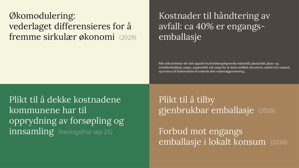 Bransjen har de siste årene blitt pålagt flere krav - og man har ganske ambisiøse mål for reduksjon i forbruk av engangs-emballasje og mer bruk av ombruksemballasje. Er din bedrift klar?