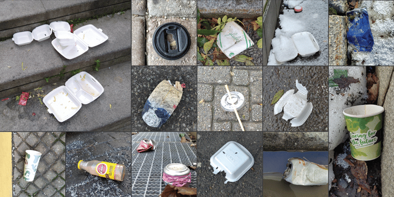 Takeaway-emballasje utgjør ca 40% av søpla i offentlige avfallsbeholdere.